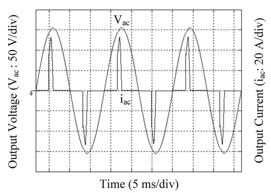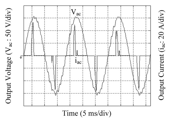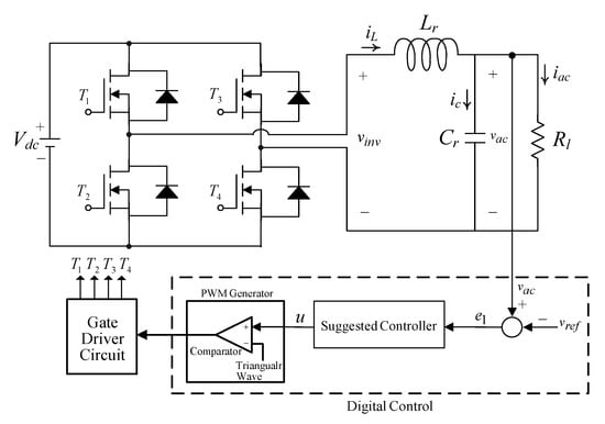Renewable energy inverters have been largely used in photovoltaic (PV) array power production, wind-driven power generation, and hydrogen-based fuel-cell power production [1,2,3]. A PV power production system is capable of turning sunshine into serviceable electricity. The usual PV power generation system comprises a solar array, DC (direct current)-to-DC (direct current) converter, DC (direct current)-to-AC (alternating current) inverter, and connected loading. It is designed to generate maximum power for the sake of transmitting it to the connected loading. Such a configuration exists in two energy converters that are seen as a dual-stage system. Both maximum power point tracking (MPPT) and output-response regulation are realized by the DC-to-DC converter. The DC-to-AC inverter converts DC power yielded by a solar array into an AC power supply delivered to a home or to the grid. In addition, one type of single-stage DC/AC inverter can merge both DC-to-DC and DC-to-AC stages. Among various topologies of power converters in renewable energy applications, the low pass LC inverter is the key component for operation interface between the renewable energy source and electrical AC grid. Even under non-linear loads, REIs should maintain lower amounts of harmonic voltage distortion in the high quality AC output response, which can only be achieved by using feedback control techniques [4,5,6].
