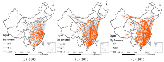 UESDN edge betweenness in the process of industrial agglomeration as shown in Figure 3.