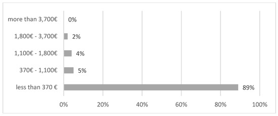 Facebook was also the most important social network for the companies—indicated by 75% of companies. As for the future use of different social networks, in most cases the companies did not intend to change anything. However, the major networks that the company would like to use more in the future included mainly Facebook (63%). Interestingly, there was a large use of corporate blogs (45%) and YouTube (44%). The majority of companies used Facebook (77%) for paid advertising. Second place belongs to YouTube, which was used by 15% of companies for paid advertising. Regarding the tools to manage multiple social networks and coordination of content, the vast majority of companies (96%) did not use any such program. Only 2% of companies used ZoomSphere and 2% used Hootsuite. The survey also investigated whether companies were able to somehow measure the return on investment (ROI) of social networks. Only 29% of respondents were able to measure their ROI. The rest were either not able to do so or were unable to assess the ability of measurable return on investment. Fifty-two percent of respondents were concerned with analyzing the activity on social networks, while 43% of companies left their activity without analysis. Fifty-five percent of respondents believed that they do effective Facebook marketing, 79% of respondents believed that social media helped raise the awareness of their business and 41% of respondents were convinced that social media helped them to increase sales. More than half of respondents (58%) stated that using social media increased their website traffic. Regarding the style of administration of corporate profiles on social media, 84% of respondents sorted out the administration themselves and 16% used outsourcing. Companies that used outsourcing on social media presentation did so primarily in the area of monitoring (63%) and design/development (63%). Only 38% used outsourcing also for content creation. Eighty-eight percent of the respondents relied on the author’s written content in the content creation, 50% used graphical authoring content (infographics, images, memes) and 36% used authoring video content. Shared third party content was used only by 27% of respondents. Copyright comprehension of the content was also of utmost importance as 61% of respondents had copyright on their content, but in the future more companies want to use more visual and video content (55%,63%). Regarding the funds that businesses spent on the administration of corporate profiles on social media, 89% of respondents invested less than 370 EUR monthly, 5% of respondents invested between 370–1100 EUR per month, 4% invested between 1800–3700 EUR per month and no company invested more than 3700 EUR (Figure 3).