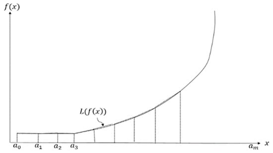 Figure 6. Since the congestion function is a non-linear function, the approximation method will be used. The primary objective of approximation (Linearization) is to figure out the best representation of the original non-linear objective function of the model. A good expressing of piecewise linear functions has an effective role in minimizing the size of the problem and promoting the efficiency of computation. Generally, a piecewise linear function of a single variable