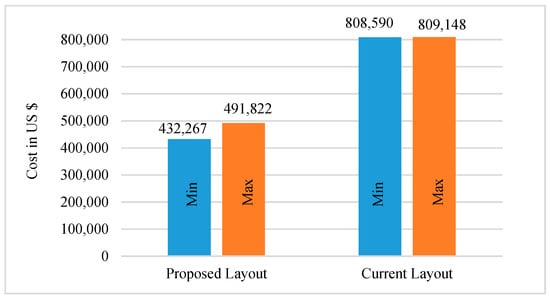 $808,589.80 with emission 2,340,496 kg CO2e, whereas the proposed layout, as represented in