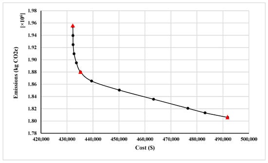 Figure 9, considering cost and emissions, respectively.