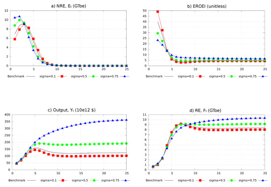 - Režný, L.; Bureš, V. Energy transition scenarios and their economic impacts in the extended neoclassical model of economic growth. Sustainability 2019, 11, 3644. [Google Scholar] [CrossRef]
