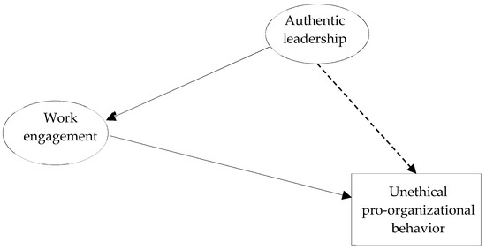 Furthermore, ethics are integral characteristics of sustainable management [23]. Ethics serve as an important management practice in sustainable development [5]. In terms of attainment of higher goals, an ethical approach to the limits of sustainable development constitutes the natural will to develop an organization. The values behind ethics, such as not exploiting resources at the expense of future generations, indicate that development is still important but not at any cost. An increasing number of companies are addressing ethical issues using institutionalized processes [24]. To this end, companies devise corporate codes of ethics that indicate which activities undertaken on behalf of the company are ethical and which are not. Therefore, it has been decided to present, in this article, the correlations among authentic leadership, work engagement, and involvement in unethical behavior displayed on behalf of an organization. It seems interesting to answer the questions whether and how authentic leadership, which has a very important ethical component, influences employee unethical pro-organizational behavior [25,26]; whether authentic leadership increases employee work engagement; and—first and foremost—whether such engaged employees are not more inclined to unethical pro-organizational behavior.