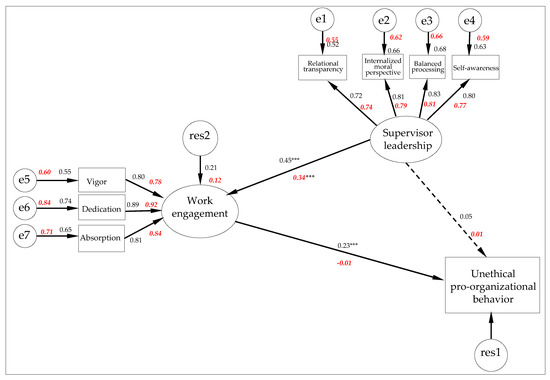 The dependencies between the variables were analyzed using structural modeling methods. The estimation was completed on the basis of the highest probability method. We assumed that the leadership characteristics of the supervisor would be important for work engagement and the intensity of unethical behavior. The relationship between a superior’s leadership and the intensity of unethical behavior is direct and indirect, with the level of engagement in work being the mediator.