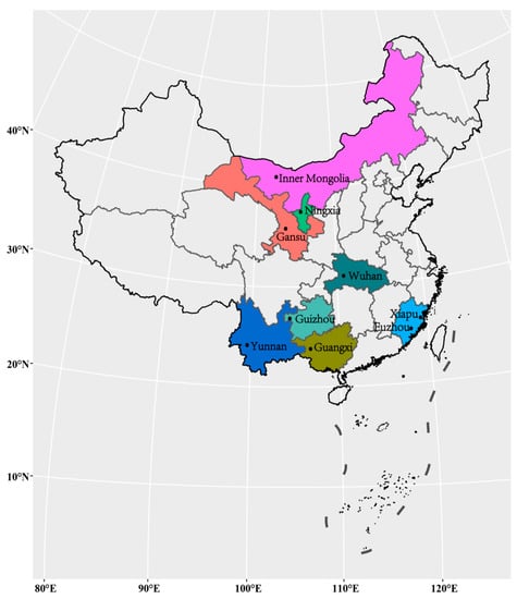Map of China showing the geographical locations of the nine Phytophthora infestans populations sampled for this study.