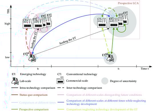 - LCAs that are focused on the future of early-stage technologies and evaluate the emerging technology in a forward-looking manner (scale-up).