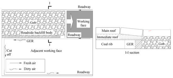 Coal is a precious non-renewable energy. For sustainable utilization of limited coal resources, it is important to increase the coal recovery rate. China has abundant coal resources with large reserves and diversification. The proven recoverable reserves of thin coal seams (TCMs) are about 6 billion tons, accounting for about 20% of the total coal reserves in China. Among them, the gently inclined TCM with a thickness of 0.8~1.3 m account for 73.4%, and the layers of TCMs below medium and hard coal account for 64.59% of the total layers, which have great mining value. However, since the mining roadway of the TCM working face is a mixed coal-rock roadway, the drifting speed is slow with a lot of gangue, which may lead to a strain between mining and drifting. High-efficiency mining technology for TCMs is an important technical way to improve the recovery rate of coal resources and achieve sustainable development of coordinated mining. In order to alleviate the tight situation of mining replacement, it is of great strategic significance to carry out and develop gob-side entry retained (GER) technology. Coal pillar and no-pillar for surrounding rock control are the two mostly used layouts in longwall panel coal mining. GER is beneficial for the sustainable development of the coal mining industry by mining without the coal pillar [1,2,3,4,5] GER maintains the gob boundary roadway behind the working face. The original roadway is retained and used as a roadway adjacent to the working face through effective roadside backfill and road-in support technology (see Figure 1) [6,7,8,9,10].