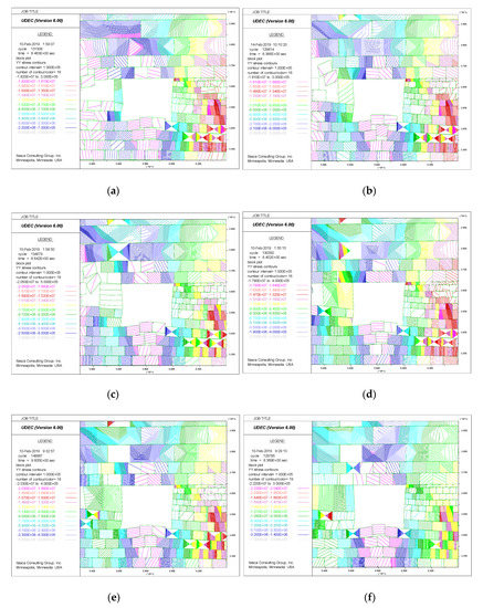- Wu, B.W.; Wang, X.Y.; Bai, J.B.; Wu, W.D.; Zhu, X.X.; Li, G.D. Study on crack evolution mechanism of roadside backfill body in gob-side entry retaining based on UDEC trigon model. Rock Mech. Rock Eng. 2019, 52, 3385–3399. [Google Scholar] [CrossRef]