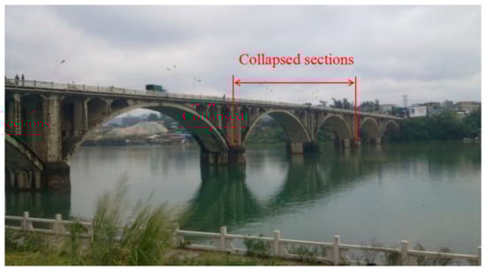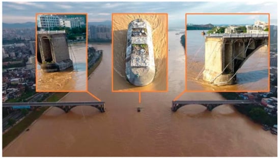 - Liu, M.M. Bridge Accident Analysis. Master’s Thesis, Southwest Jiaotong University, Chengdu, China, 2013. (In Chinese). [Google Scholar]