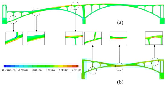 - Wu, X.; Gu, D. Local stress analysis of arch foot for trough girder and arch composite bridge. Appl. Mech. Mater. 2014, 638, 961–964. [Google Scholar] [CrossRef]