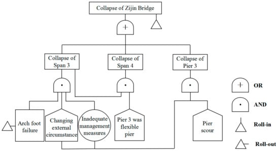 - Zijin bridge failure was used as a case study to analyze the reasons relating to a lack of sustainable management. The FTA results show that the arch foot failure was the direct triggering cause of the Zijin bridge collapse. Moreover, a lack of real-time monitoring, risk assessment and other management issues were potential comprehensive factors causing the bridge collapse.