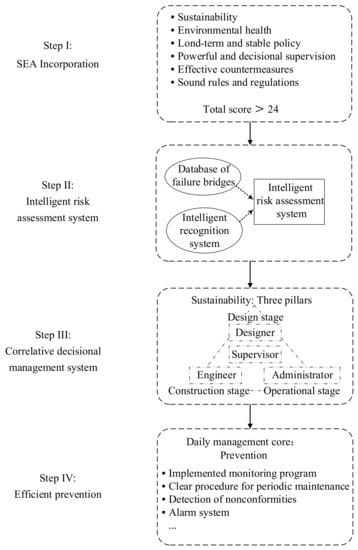 - To improve the bridge sustainability, the following management guidelines on the basis of SEA were proposed: (i) a management system improved by SEA; (ii) an intelligent risk assessment system; (iii) perfecting the correlative decisional management system; (iv) efficient and diversified means of prevention.