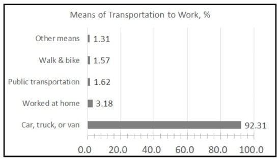 - McKenzie, B. Who Drives to Work? Commuting by Automobile in the United States: 2013. Report Number ACS-32; 2015. Available online: https://www.census.gov/library/publications/2015/acs/acs-32.html (accessed on 26 September 2018).
