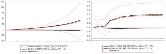 where and denotes the improvement and decline of institutional quality, respectively. These institutional changes are estimated as the negative and positive partial sum of institutional quality changes as mentioned below: