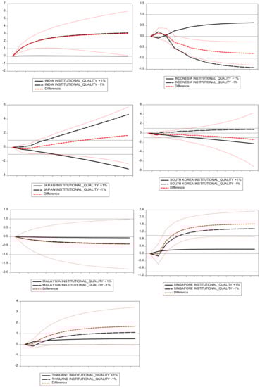 From an ideal perspective, the existence of the tourism industry in a country/region is a blessing because of the anticipated benefits in the form of economic prosperity, job creation, accumulation of foreign exchange, and earning tourism revenues [60,61]. Turning this idealistic state into reality means there must be a pivotal role for institutions that optimize the desired benefits. The present study examines the asymmetric role of institutional quality in stimulating tourism inflows in nine high tourist Asia Pacific countries using a panel dataset from 1980 to 2018. The study extends the institutions—tourism literature, adding asymmetric evidence using a robust NARDL approach [16]. NARDL is an extended version of ARDL. Both models can capture long-run and short-run relationships—NARDL adds a unique feature by determining the asymmetries in long-run and short-run dynamics. We find that in the long-run, stronger (weaker) institutional quality among selected countries asymmetrically stimulates (hinders) the demand for tourism inflow. However, there is weak evidence of short-run asymmetries. Furthermore, in-depth analyses of each country show that except for China, institutional quality and tourism inflow co-move. However, the cointegration varies with respect to the measure of tourism inflow. We conclude that our findings are robust to the alternative measures of tourism inflow. The study offers useful policy inputs for devising short and long-run policies for the improvement of the institutional framework in the region by understanding the asymmetric impact of institutional quality on tourism inflow.
