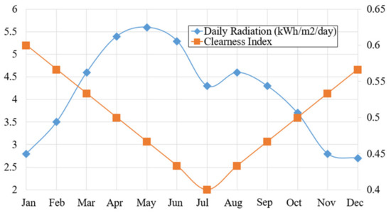 Monthly solar radiations at Deokjeok-do Island [13].