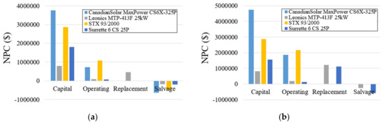 Net present cost (NPC) breakdown for both systems (a) System A (b) System B.