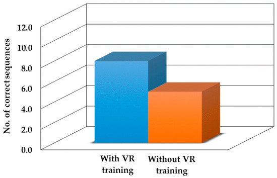 Overall, the mean values of the first group are lower than the ones of the second group with a reduction ranging from 5% to 40%. Finally, as shown in Figure 12, the number of times in which the workforces carried out the correct sequence of the monitoring steps is higher in the first group (8 out of 12) than one of second group (5 out of 12). This highlights how the use of the virtual reality tool allowed technicians to better memorize the different measurement phases.