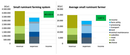 Annual monetary economy of the small ruminant farming system (left) and the average small ruminant farmer (right) in 2016.