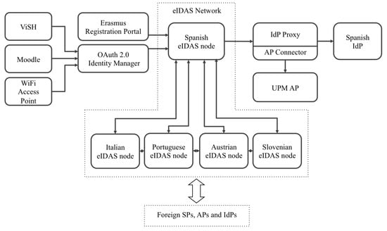 Some authors have proposed approaches for including human-related factors when designing innovative services and demonstrate how their performance can be improved [,]. In this sense, the eIDAS regulation for providing electronic identification to citizens has drawn the attention of educational institutions due to the potential benefits of integrating electronic identification in academic services []. In this regard, [,] outlined the benefits of integrating higher education services such as eAccess and eDiploma into the eIDAS infrastructure.