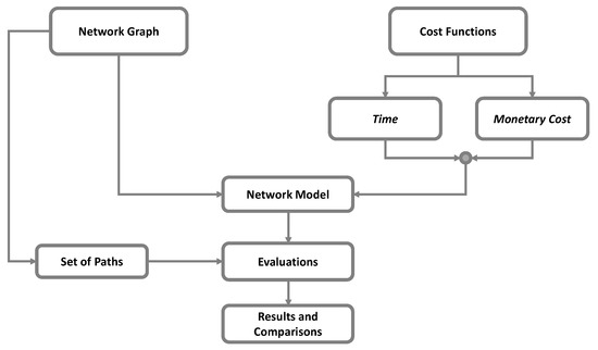 The assessment of path costs can be realized in terms of generalized transport cost or by considering the separately non-homogeneous cost components (time and monetary cost). In the first case, it is possible to have a summary indicator, which is very useful in the comparison of different alternatives. In the second case, instead, the interpretation of phenomena by stakeholders are simplified; in fact, they consider time or monetary cost in relation to the delivery and the freight type. The paths are generated with reference of graph and the related evaluation are realized in terms of: