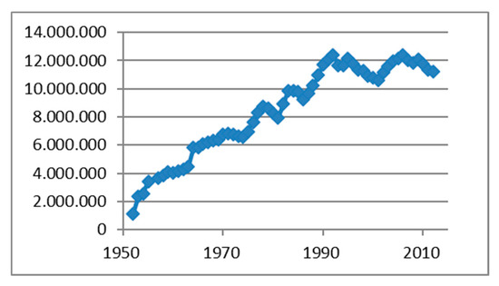 To secure the future drinking water demand, the drinking water company applied, in 1990, for a new permit for an extraction of 12 million m3/year. The production of drinking water increased in time (Figure 2).