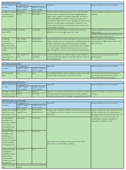 In the case study, the objective was to identify design principles to design infrastructures in a more sustainable way by learning from two conflicting claims of three specific infrastructures. As can be seen in Figure 3, there are some similarities and differences between the two conflicts. Based on these, eight design principles were derived (last column of Figure 3), which have to do with: