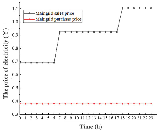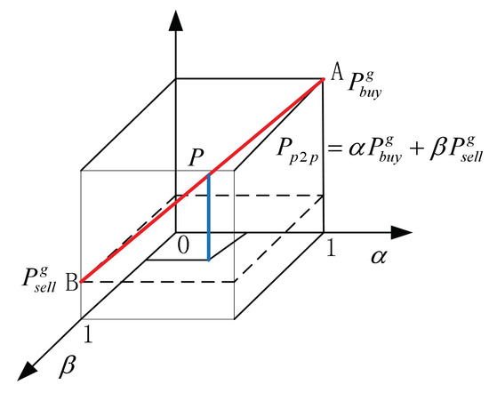 According to the motivational psychology of users to participate in microgrid P2P trading, the P2P trading prices in microgrids fall in the range of , which can be converted to linear weighting, and the red line in Figure 4 illustrates the trajectory of P2P trading prices.