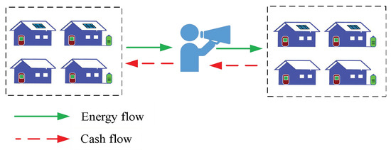 In light of the status quo of a P2P in power trading, we propose a P2P power trading system in the microgrid with PV with respect to a single form of energy, i.e., electricity. As shown in Figure 1, energy flow refers to the flow of power between buyers and sellers and cash flow illustrates the cost and income of electricity trade.