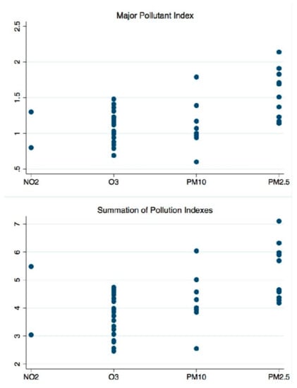 Major pollutant index (MPI) and summation of pollution indexes (SPI) by major pollutant type.
