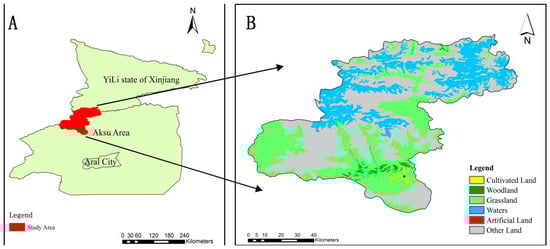 The Tomur region includes the counties of Zhaosu, Wensu, and Baicheng in Xinjiang, China. The highest peak of the mountain of Tianshan, located in the three counties, is one of the constituent areas of Xinjiang Tianshan World Natural Heritage. East–west mountain systems such as Halketawu, Khantengri, and Tomur cross the study area and divide it into the south and the north. The geographic coordinates are 79°27′10″ ~ 83°04′20″ E, 40°48′57″ ~ 43°22′05″ N, with a total area of 40,884.07 km2 (Figure 1A). The study area belongs to the temperate continental climate, and the climate is significantly affected by the terrain. The north slope is wet, while the south slope is dry. Precipitation is concentrated in the summer and winter, and precipitation in the north slope is significantly higher than that in the south slope. The difference of natural geographical environment, such as the climate of the south and north slope, forms a different vertical natural landscape belt. There are seven large rivers on the south and north slopes, which are mainly fed by melting water from snow and ice [31].