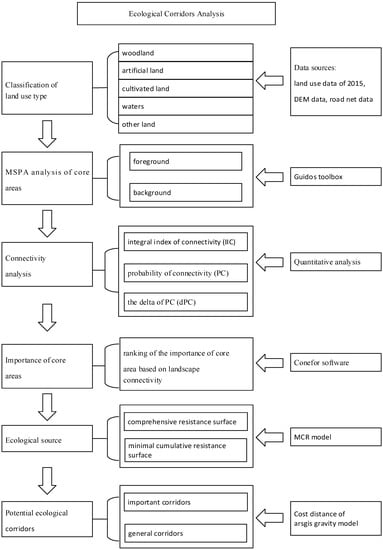Methodology steps of ecological corridors analysis. Drawn by the first author.