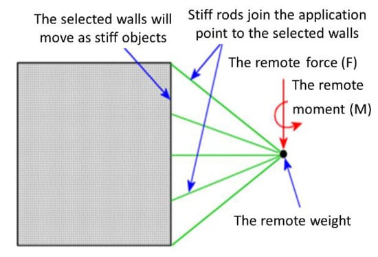 A fixed remote load simulates the impact of load located at a certain distance from attachment excluding the elements placed between the load and restraint. Another example of remote load is the load at a certain distance from restraint without any additional subassemblies between them [41]. A schematic diagram of remote load is presented in Figure 6.