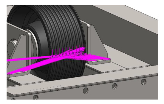 A three-dimensional model of the friction lift carrying structure with the geometry of the carrying ropes system in Figure 4, while diagram of the friction lift structure is presented in Figure 5.