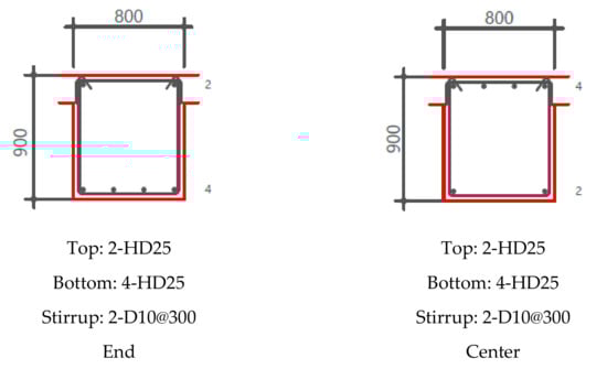 The compressive strength of concrete was 24 MPa. SD500 (yield strength: 500 MPa) and SD400 (yield strength: 400 MPa) were used for a rebar with a diameter of 16 mm or more, and a rebar less than 13 mm, respectively. SM490 (tensile strength was 490 MPa) was used for steel members. Structural design and analysis were conducted according to the Korean Building Code (KBC) 2016.