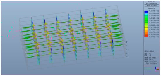 Prior to the economic analyses of the three vertical underground extension methods, structural stabilities of the illustrative examples were checked. Structural analyses were carried out in the three illustrative examples to extend underground space vertically (from the first to third basement level) using the three sustainable methods. MIDAS Gen 2017 was used for the structural analysis by phase, including demolishment of the existing B1 floor, excavation to the B4 floor, and construction of a structural frame in the underground space.