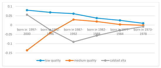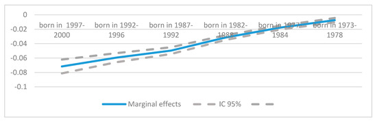 Marginal effects for cohorts on quality of employment. Source: Own elaboration based on model results.