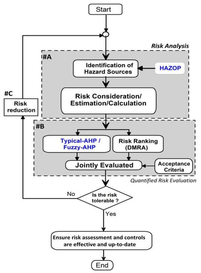 In Figure 2, we illustrate the flowchart of a RAA process (as a part of the risk management) after the incorporation of a HAZOP_TAHP/FAHP framework and the DMRA risk-ranking tool.