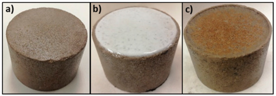 Indiana limestone core sample: (a) before filtration, (b) after filtration, and (c) after removal with 50 wt.% GBRA.
