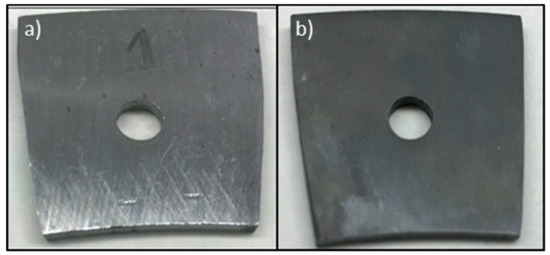Steel coupon: (a) before and (b) after the corrosion test using 50 wt.% GBRA at 212 °F.