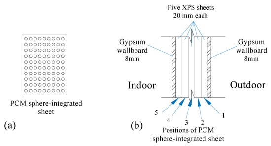 (a) PCM sphere-integrated sheet and (b) positions of the PCM sheet within the wall [49].