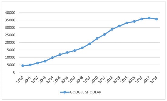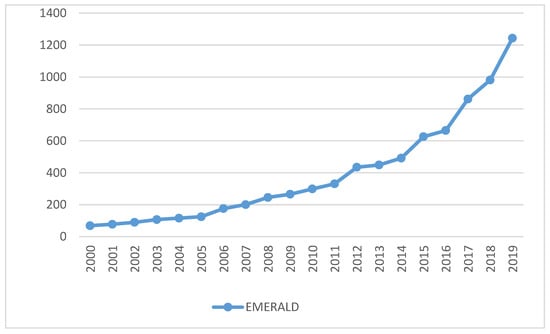 In the Emerald database, a constant increase in the number of analyzed papers was observed: from 69 in 2000 to 1243 in 2019, while in the Google Scholar database, the number of papers increased from 4460 in 2000 to 36,400 in 2017. In 2018 the upward trend stopped, and in 2019 there were 35,700 papers.