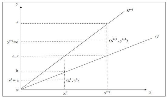 Figure 1. By comparison, in vertical distance ratio oe/od in order to realize similar technical efficiency to that originates in time t. Since the frontier has shifted, od/oe exceeds unity, even though it is technically inefficient when compared to the period