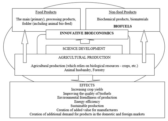 Given the importance of the scientific component in the development of innovative technologies for the production of biofuels, a model for the development of innovative bioeconomics on alternative (biological) fuels is proposed in the work (Figure 5).