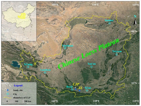 Schematic map of the study sites and their locations within the Chinese Loess Plateau (CLP). Two typical profiles, Caijiapo (CJP) and Yangling (YL), are located in the southern margin of CLP.