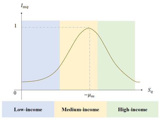 (f) denotes passenger income function about passenger group q who choose railway traffic mode m. Under the condition of assumption (A1), the complex relations between different passenger income levels and the utility values of choosing different railway traffic modes are as follows. When passenger income is in a certain range, the utility value is the highest and when the income is lower or higher, the utility value will decrease. So the passenger income function should be established as curve which can map variables by probability density function of Normal distribution or Gaussian distribution. We establish passenger income function as follows whose graph is shown in Figure 3.