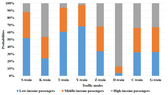 The models also show that the characteristics of low-income passengers, medium-income passengers and high-income passengers in choosing traffic modes are different, as in Figure 6.