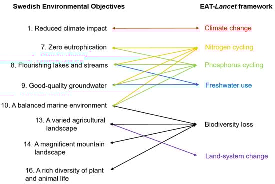 Links between Swedish Environmental Objectives [17] and the EAT-Lancet framework [1].