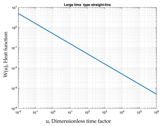 where C (a constant) depends on the initial and boundary conditions of the heat flux. Type curve for the planer source can be obtained from Equation (13) by defining dimensionless time factor, u, and wall function W(u) as follows: